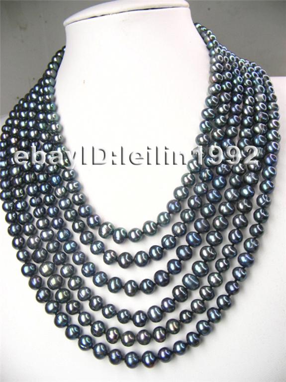 Genuine 120" 7-8mm black freshwater pearl necklace