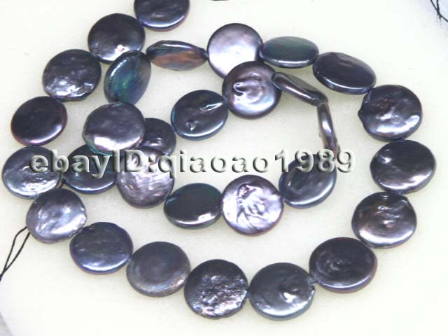 wholesale 1 strands 13-14mm coin black freshwater pearl