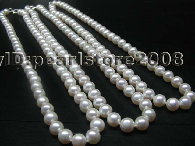 3 Qty Stunning 7mm round white pearl necklace