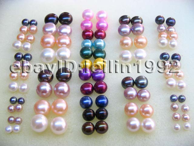 50 pairs 4-10.5mm pearl earring golden 925silver studs