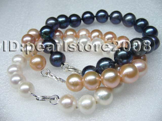 3 Qty 10mm round pearl bracelets 925s clasp free P&P