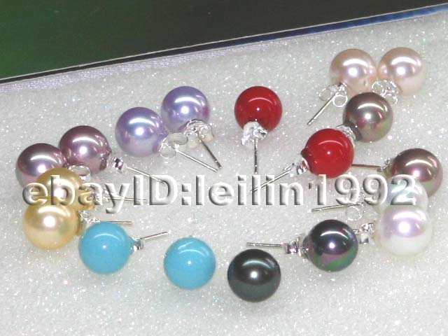 AAA 10 pairs 8mm Round seashell pearl earring 925s stud