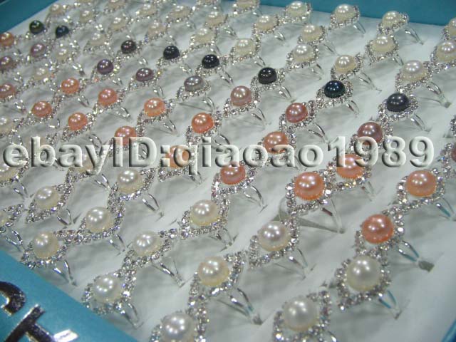 Beautiful 100 PCS zircon & 7-8mm freshwater pearl rings