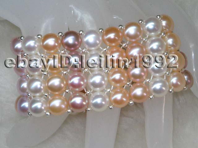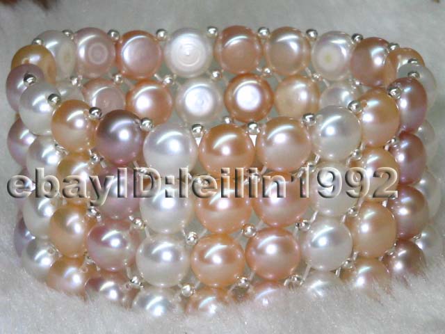 4 Qty AAA 4-row button real pearl bracelets free P&P