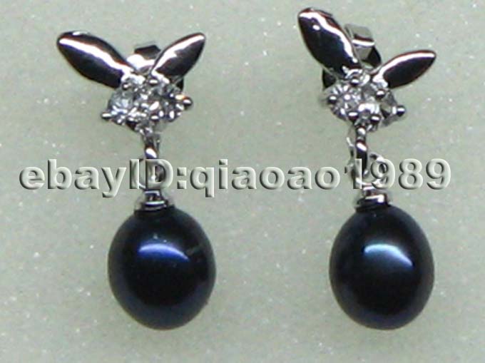50 pairs 7-8mm black freshwater pearl dangle earring