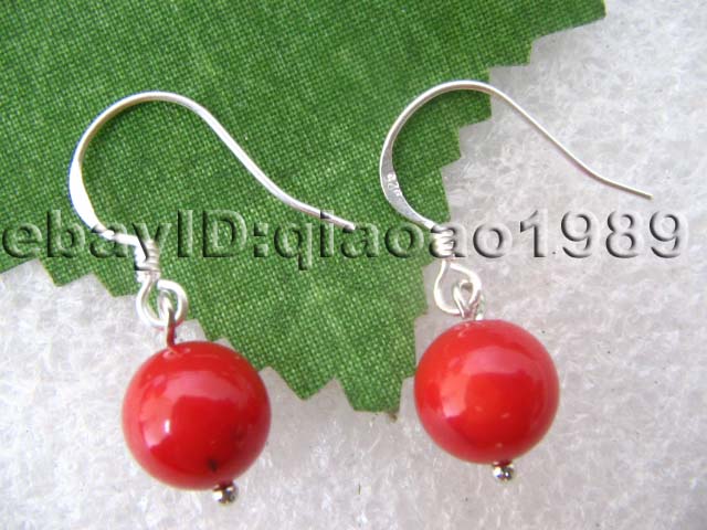 10 pairs 8mm round red coral dangle earring 925 silver