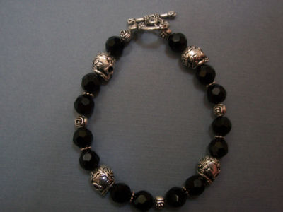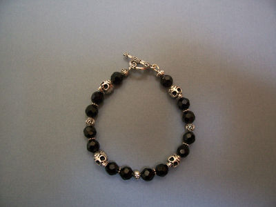 BLACK ONYX WITH SILVER PLATED SKULL BRACELET