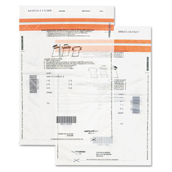 Great for night drop deposits to your bank. Barcodes and sequential numbers individualize your deposits. Tear-off receipts help you track each deposit. Features easy to write-on surface. Physical attacks cause a STOP message to appear in closure. Thermochromic ink on the closure detects any entry into the bag with heat. Width: 9 in; Depth: 1/8 in; Color(s): Clear; Height: 12 in.