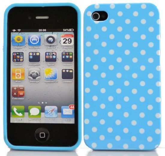 New Polka Dots Soft Tpu Blue Case for iPhone 4 4s w/ screen protector!! USA