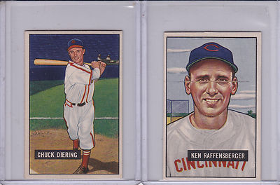 I have about 25 1951 Bowman, that are just Gorgeous. Their are no creases on any of my vintage cards and 99% of the time, i wont even list a Creased card, unless its a 1921 Babe Ruth. The color on these cards are brilliant and the corners are super strong, with lite touches. They all range in the ExMt 6.5 to 7.5 range. This next one listed is card #158 in the set. Chuck Diering of the St. Louis Cardinals. Card is ExMt and Beautiful!!! Best of luck bidding on all my items. I hope that one day, each and every one of you can say they were thrilled to have found my store. As always, God Bless each of you.