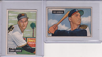 I have about 25 1951 Bowman, that are just Gorgeous. Their are no creases on any of my vintage cards and 99% of the time, i wont even list a Creased card, unless its a 1921 Babe Ruth. The color on these cards are brilliant and the corners are super strong, with lite touches. They all range in the ExMt 6.5 to 7.5 range. This next one listed is card #19 in the set. Sid Gordon of the Boston Braves. Card is ExMt and Beautiful!!! Best of luck bidding on all my items. I hope that one day, each and every one of you can say they were thrilled to have found my store. As always, God Bless each of you.