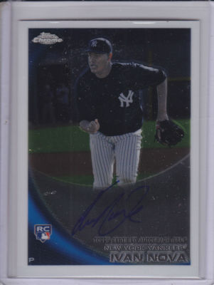 Up Next for bid, from the 2010 Topps Chrome Hobby set, i bring you a Nice, clean Auto/Rookie card of New York Yankee pitcher and a guy that was almost untouchable for the last half of the season and in the playoffs, Ivan Nova. card will be listed as a BIN item, at a low cost to you. Take advantage of these low prices, while their still low. Good luck and God Bless always!!