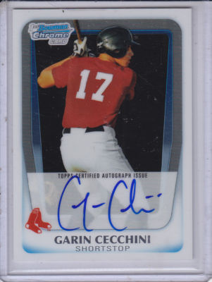 Good Evening and welcome To Northcountry Cardboard Collectables and Leslies auction. Up for bid, From the 2011 Bowman Chrome Prospects Hobby Collection, im happy to offer you this Sharp Prospect Auto of Boston Red Sox up & Coming Shortstop, Garin Cecchini. i will list this item as a BIN Listing, at a low price, with Reasonable offers gladly accepted. I wish you all the best and also would like to thank you for taking the time out to view my items and my store. Keep in mind that i have 25,000 + Autos, GUed, RC, Graded, Vintage, oddball and just about anything and everything you can imagine, so im sure you can understand the time and dedication it takes, to simply list items, especially with the overall size of my collection. Anything and everything is and will be available, at some juncture. If their are items you are specifically looking for, or players/teams you collect, send me a message and i will make bulk deals that will be rock bottom priced. Thanks and God Bless!!