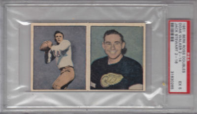 Hello and welcome to Leslies Auction and Northcountry Cardboard collectables. Up for bid is a rare, 1951 Berk Ross Panel of SMU/Detroit Lions star, Doak Walker and Detroit Red Wings All Star Defenseman, Jack Stewart. This Rare panel is N/Aed per becketts and is also PSA Graded EX 5. I will list this as a BIN item, at a price i feel is low in comparison to item and also concider serious offers. Best of luck with your offers and God Bless!!!