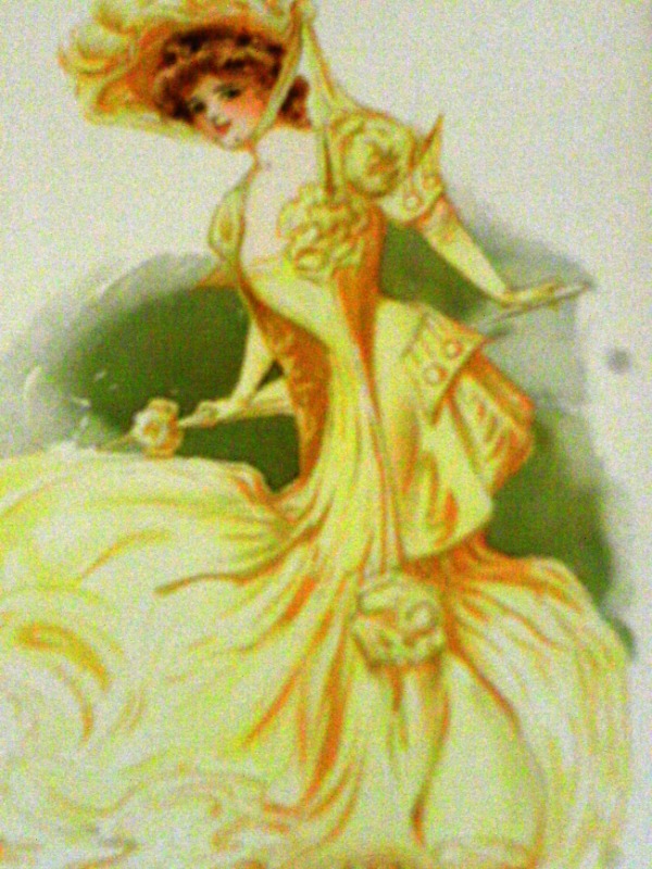Vintage litho 1907 show girl Gray Co. New York yellow dress