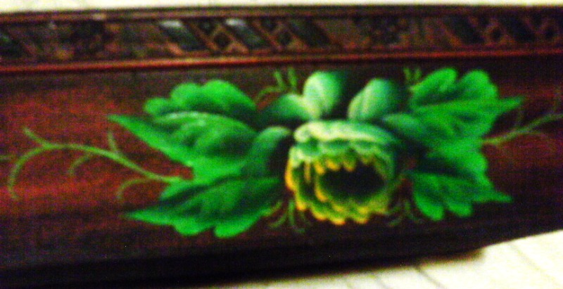 Beautiful hand painted wood handled tray approximately 10" x 8" x 3"