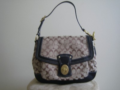 Up for bidding is an Authentic Coach Women's shoulder bag.This bag is brand new with tag and card.The approximate size is 13.5" x 3.5 x 9.5 depth.Shoulder adjustable leather handle(strap), length is approximately 18".Materials made of woven Jacquard fabric and leather and the color is Khaki and Black combination as pictured.It features front pocket and 3 pockets inside 1 bigger pocket with zipper,flap closure with turn lock,black leather trim,Coach leather hang tag.Please refer to the photos provided for more details or send us email for any questions.MSRP is $398.00+tax.This is Genuine Coach bag with serial number inside(see the photos).