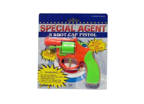 Wholesale 8 Shot Cap Pistol is a repeating cap pistol with die-cast cap ejector. Caps not included. Case Pack 48 Please note: If there is a color/size/type option the option closest to the image will be shipped (Or you may receive a random color/size/type).