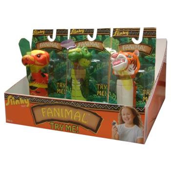 Fanimals Counter Display includes Qty 12 Assorted Animal Fans. Made by Slinky. Fans are 4.5"""". Ages 5 ."" Case Pack 96 Please note: If there is a color/size/type option the option closest to the image will be shipped (Or you may receive a random color/size/type).