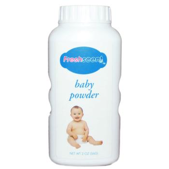 Freshscent Baby Powder Talc. 2 ounce baby powder works well with any wholesale discount cheap bulk diapers. Case Pack 96 Please note: If there is a color/size/type option the option closest to the image will be shipped (Or you may receive a random color/size/type).