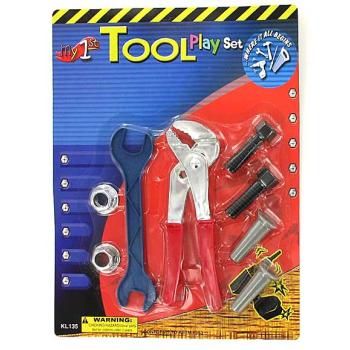 Add these fun tools to his play toolbox for hours of fun. Set includes plastic wrench screws and a level. Presents a choking hazard to children under the age of 3."" Case Pack 96 Please note: If there is a color/size/type option the option closest to the image will be shipped (Or you may receive a random color/size/type).