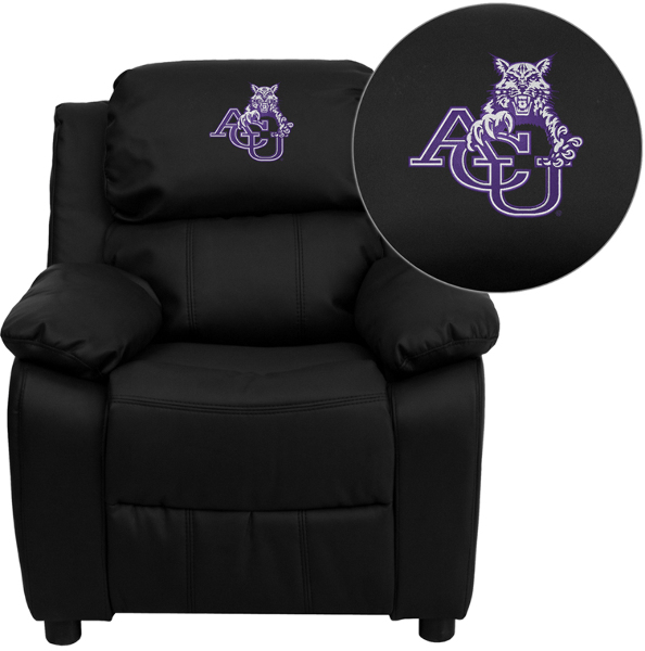 Abilene Christian University Wildcats Embroidered Black Leather Kids Recliner with Storage Arms