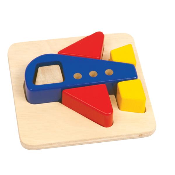 Primary Puzzle - Airplane. The big chunky pieces of these colorful puzzles are easy for toddlers and preschoolers to grasp. Familiar objects with only 5 to 7 pieces per puzzle give children confidence. Made of solid wood with bright non-toxic paints. Ages 2 . Made Of: Rubberwood ."" Sold Individually Please note: If there is a color/size/type option the option closest to the image will be shipped (Or you may receive a random color/size/type).