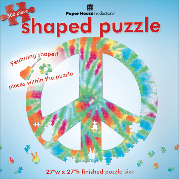 Jigsaw Shaped Puzzle 27""X27""- Peace Sign- Tie Dye PAPER HOUSE-Jigsaw Puzzle: 500 pieces. Adorable shaped jigsaw puzzles that feature shaped pieces within the puzzle for added fun! Design: Peace Sign. Size: 25x25 inches. WARNING: CHOKING HAZARD-Small Parts. Not for children under 3 years. Imported." Sold Individually Please note: If there is a color/size/type option, the option closest to the image will be shipped (Or you may receive a random color/size/type).