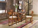 This casual style Copperfield counter height dining set features a single drop leaf extension. Matching chairs feature a wood back and upholstered cushioned seat.
