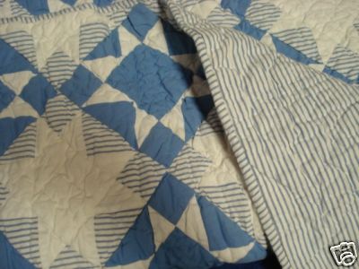 BEAUTIFULWHITE AND BLUE STARS COTTON QUILT REVERSES TO BLUE AND WHITE TICKING STRIPES. ALSO AVAILABLE IN KING.