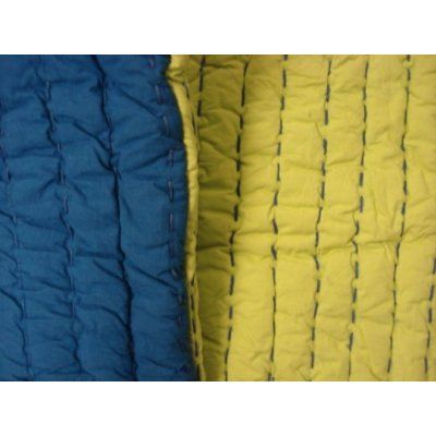 THIS COMTEMPORARY COTTON QUILT GIVES A COLORFUL PLAY TO YOUR AMBIENCE. SOFTLY INSERTED OPPOSITE YARN GIVES A PERFECT CONTRAST TO KEELY. THIS QUILT IS REVERSIBLE KEELY BLUE ON ONE SIDE AND LIME GREEN ON THE OTHER SIDE. ALSO AVAILBLE IN KING AND QUEEN SIZE.
