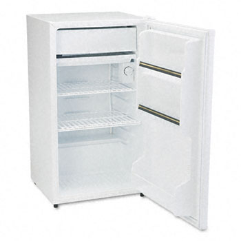 The full-range temperature control allows you to find the ideal temperature, while the frozen food compartment with one ice tray means you can have ice-cold drinks. Features a polyurethane foam insulated design that's 2001 energy compliant. Food is easy to access via the triple-decker door storage or three slide-out shelves. Other features include: flip-up freezer door, reversible door, two leveling legs, smooth-back design. Capacity (Volume): 3.600 cu. ft.; Width: 18 5/8 in; Depth: 19 7/8 in; Height: 33 1/2 in.