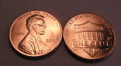 The current Lincoln cent's reverse (tails side) design is emblematic of President Abraham Lincoln's preservation of the United States as a single and united country. While the obverse (heads) continues to bear the familiar Victor David Brenner likeness of President Lincoln that has appeared on the coin since 1909, the reverse features a union shield with a scroll draped across and the inscription ONE CENT.
