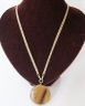 You are bidding on a lovely gold-tone metal double chain fashion necklace with a tiger eye-look pendant encircled with filigree gold-tone metal by MONET - IN NEW WITH TAGS CONDITION. MSRP is 59 Euros (approximately $86.00).