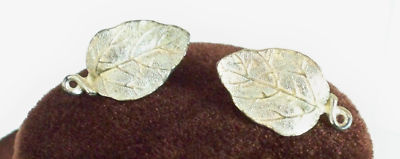 Pretty Vintage GOLDETTE Silver Leaf Shape Screwback Earrings