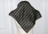 Neat scarf features a block pattern with sripes in shades of gray, bronze and gold. Approximate measurements are 17" square.