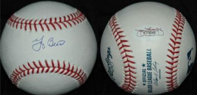 Up for auction is a Rawlings Official Major League baseball(Selig) signed by baseball Hall of Fame great Yogi Berra signed in blue ink. This has been JSA certified #E73648 and comes with sticker and certification card. Yogi Berra played in the Major Leagues 1946-1963 & 1965 with the New York Yankees & New York Mets. Mr. Berra also managed the Yankees & Mets. FREE SHIPPING when you use Buy-It-Now! If you use the Buy-It-Now please wait for me to send you an invoice before paying! Your item will be shipped to you US Priority Mail with delivery confirmation. If you want your item insured(recommended) email me at end of auction to add it to your invoice! Payment must be made within 5 days. Please check out my other auctions for HOF autographs as well as other signed memorabilia. Thanks for looking.