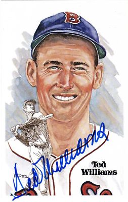Up for auction is a Perez-Steele postcard # 09299/10,000 signed by deceased Baseball Hall of Fame great Ted Williams in blue sharpie. Mr Williams played in the Major Leagues from 1939-1942 & 1946-1960 with the Boston Red Sox. Mr Williams also managed the Washington Senators/Texas Rangers from 1969-1972. Mr Williams passed away in 2002. FREE SHIPPING when you use Buy-It-Now! This will be put in a 4x6 top loader and mailed in a photo mailer via USPS first class parcel w/delivery confirmation for your protection. I have been an autograph collector for many years and I guarantee the authenticity of all my items that they would pass PSA/DNA certification. Please check out my other signed HOF item as well as other great signed & unsigned memorabilia. Thanks for looking!