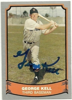 Up for auction is one 1988 Pacific Legends card #69 that has been signed by deceased Baseball Hall of Famer George Kell signed in blue sharpie. Kell was a player in the Major Leagues from 1943-1957 with the Philadelphia A's,Tigers,Red Sox,White Sox and Orioles. Mr Kell passed away in 2009. FREE SHIPPING when you use Buy-It-Now! Your item will be put in a top loader and shipped in a bubble envelope via USPS first class parcel w/delivery confirmation for your protection. I have been an autograph collector for many years and I quarantee the authenticity of all my items that they would pass PSA/DNA certification. Please check out my other auctions of signed HOF items as well as other great signed & unsigned memorabilia. Thanks for looking!