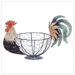 Pretty, hand-painted hen wire basket ornamented by her iridescent tail. Metal. 12" x 6 3/4" x 7 1/4" high.
