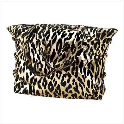 Go glam with this show-stopper of a bag and watch your friends all growl with envy! Long favored as a couture classic, a bold black leopard pattern gets a precious treatment with luxurious, lustrous gold. Roomy center compartment holds plenty of essentials right at hand; zippered front pocket keeps small items within ready reach. "Purrrr"-rific! Polyester fabric. Spot clean only.