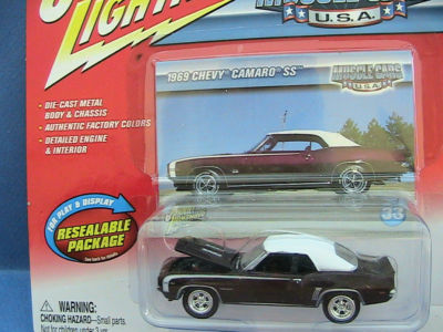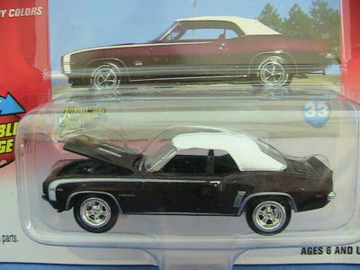 1/64 scale,1969 Chevy Camaro SS convertible,burgandy with matching interior and white top,open hood with detailed engine,collector card, MOMC
