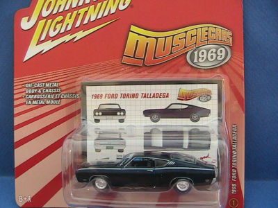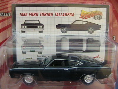 1/64 scale,1969 Ford Torino Talladega midnight blue with black interior and white pinstripes,RR TIRES,COLLECTOR CARD MOMC