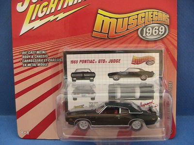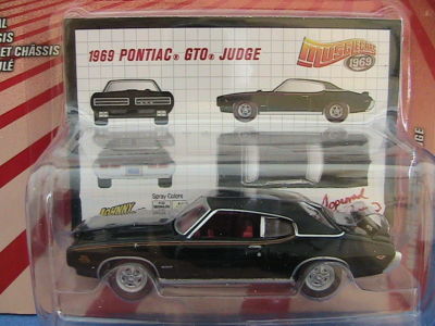 1/64 scale,1969 Pontiac GTO Judge,black with black"vinyl"top.red interior and pinstripes ,RR redline tires collector card MOMC