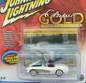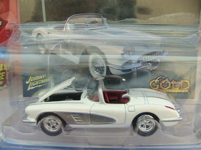 1958 CHEVY CORVETTE CONVERTIBLE WHITE WITH SILVER ACCENTS AND RED INTERIOR,OPENING HOOD,COLLECTOR CARD MOMC