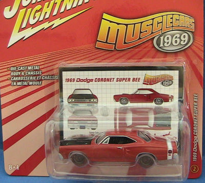 1969 DODGE CORONET SUPER BEE,RED WITH BLACK RAISED HOOD AND INTERIOR,RR REDLINE TIRES WHITE BEE STRIPE,COLLECTOR CARD MOMC