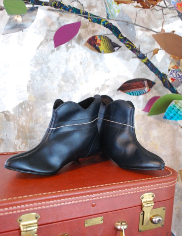 Item Descriptionn Style.... MOD, Urban, EMO, Indie Cut.... Bootie, Detail.... Buckle on the outside of each boot with contrasting white stiching Material.... Leather Label.... Waldettes Color.... Black Zips.... No Condition.... These are dead stock NWOT~ New without tags: Never washed or worn Size.... 6.5 (see measurements) Misc.... These are amazing original MOD booties. They slip on and will look amazing with skinny jeans as you crusie around on your Vespa.