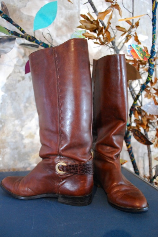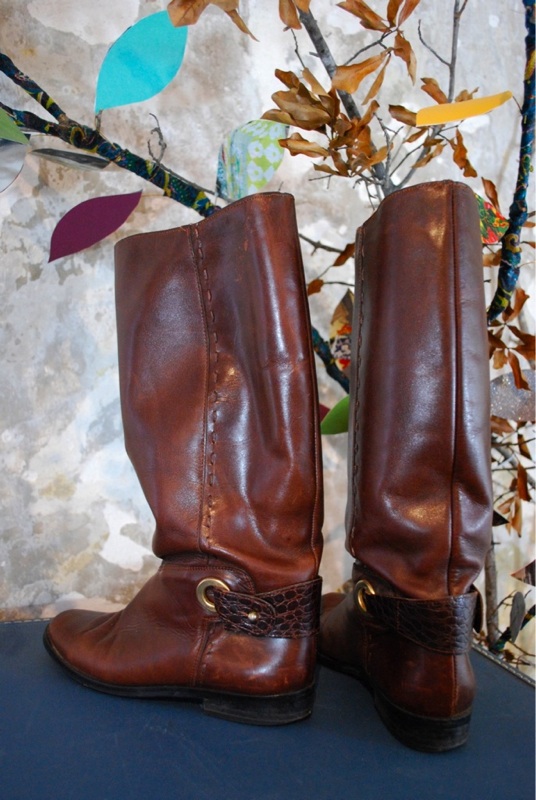 VTG 80s Riding Boot LOTS OF DETAIL Dark Brown SZ 7.5