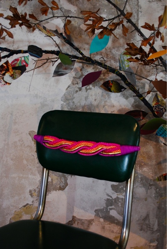 Item Descriptionn Style.... Punk, Hipster Design.... Woven, Braided Material.... Poly, rope-like material Label.... N/A Color.... Pink, Peach, Gold, Purple Condition.... EXCELLENT~ Previously worn, with only very slight wash wear; no flaws Size.... M L (see measurements) Misc.... Gold hook in back
