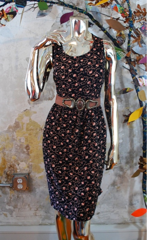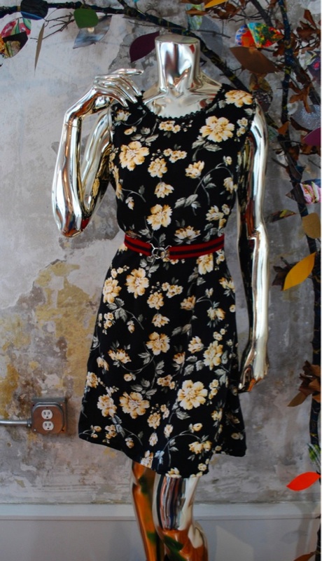 Item Descriptionn DRESS 1 Style.... Day Dress, Hipster, Indie, Boho Cut.... Straight Material.... Cotton Label.... None Color.... Black, Yellow, Cream, Green Pattern.... Floral Bodice.... Loose fit Neckline.... Scoop with black lace trim Sleeves.... Tank Waist.... Open Skirt.... Straight with darts front and back Pant.... N/A Length.... Mini Buttons.... None Zips.... None Lined.... No Condition.... EXCELLENT~ Previously worn, with only very slight wash wear; no flaws Size.... No size tag (see measurements) Misc.... DRESS 2